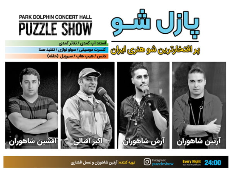 اگر به دنبال یکی از بهترین و پرطرفدارترین جنگهای شبانه در جزیره هستید، بدون شک باید جنگ پازل شو کیش با تخفیف ویژه را تجربه کنید. این برنامه با اجرای هنرمندان نامآشنایی چون اکبر اقبالی و آرش شاهوران و به تهیهکنندگی و کارگردانی آرتین شاهوران و عسل افشاری، هر شب در سالن بزرگ کنسرت هال پارک دلفینها برگزار میشود.