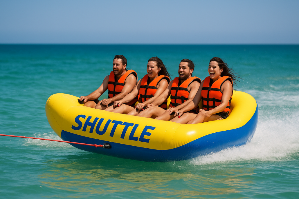 روی یک شاتل بادی رنگارنگ بشین و با سرعت روی موجهای خلیج فارس کشیده شو. این تفریح هم برای جمعهای دوستانه عالیه، هم برای خانوادهها، چون از ۴ تا ۸ نفر میتونن همزمان سوار بشن.